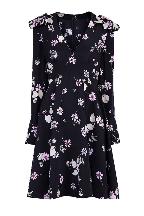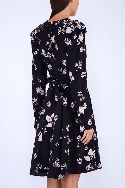 Шелковое платье с принтом Flowers Fall и поясом с лентами