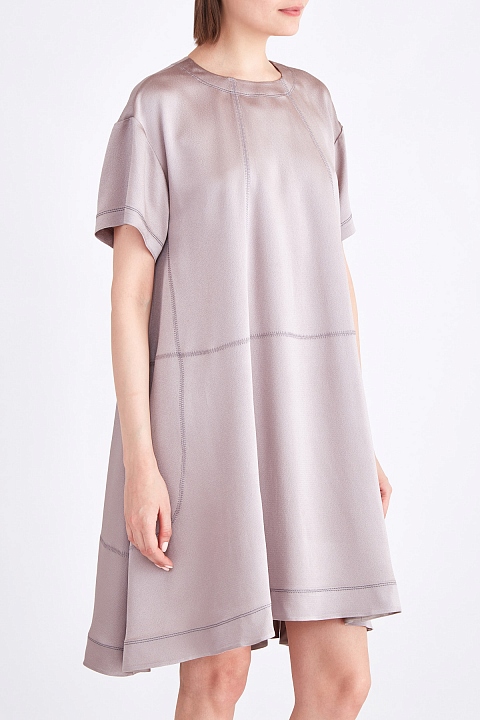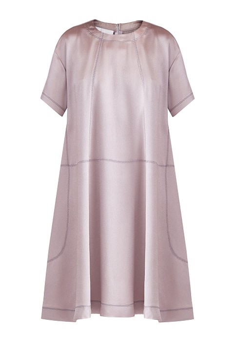 Платье-трапеция сложного кроя из тисненого атласа с фактурными швами