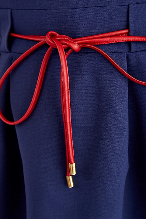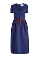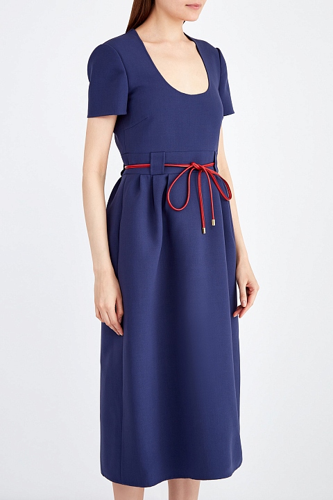 Платье из двойной шерстяной ткани с контрастным поясом из кожи