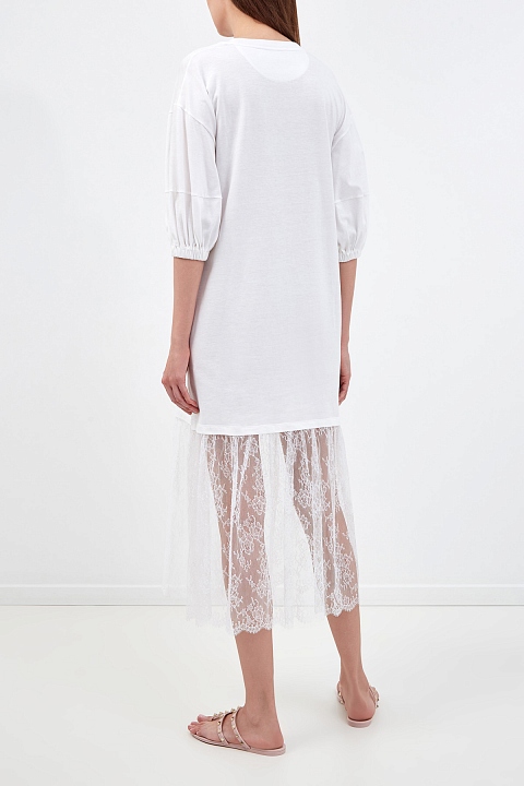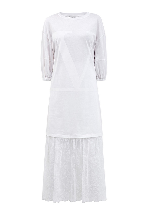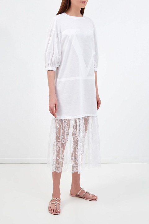 Платье-футболка с кружевным подолом и принтом VLOGO в тон
