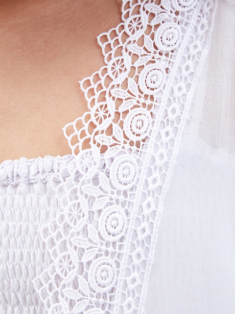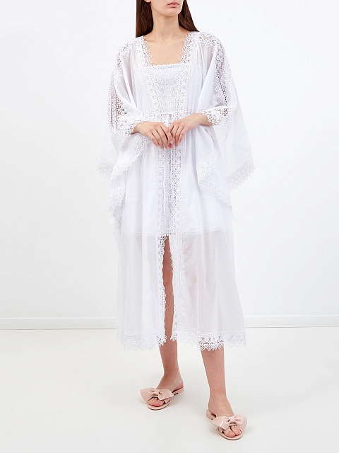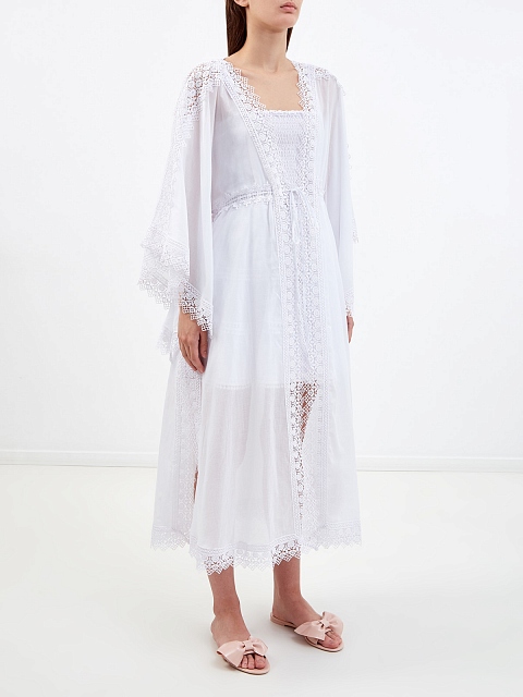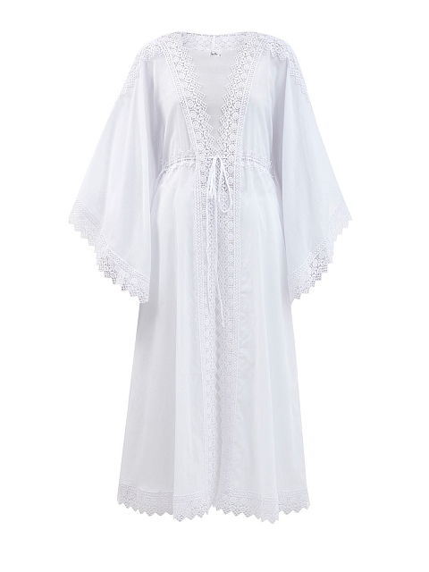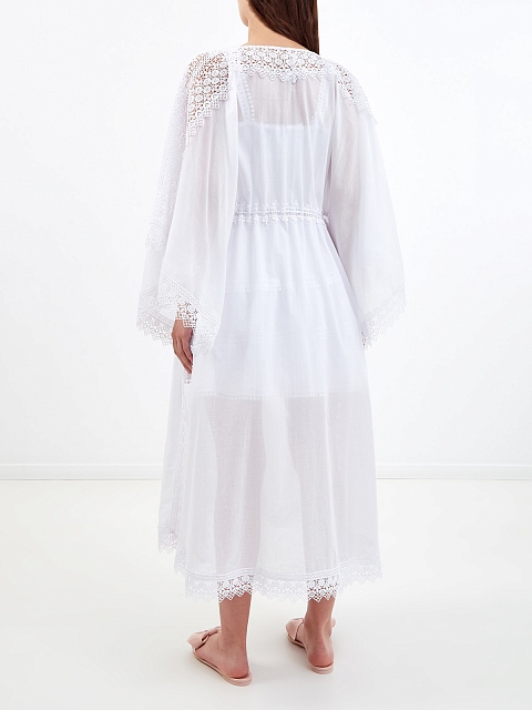 Удлиненная туника Angela в белом цвете от Charo Ruiz Ibiza сочетает тонкий мягкий хлопок и геометрические вышитые мотивы. Регулируемый пояс с завязками позволяет моделировать силуэт по желанию, объемные асимметричные рукава подчеркивают расслабленный стиль изделия.