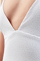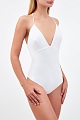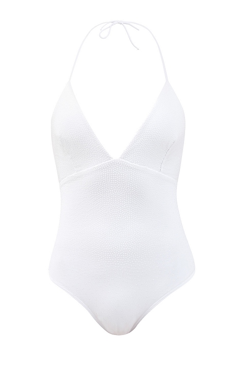 Женственный слитный купальник из пляжной коллекции Ermanno Scervino выполнен в белоснежном оттенке из фактурного пике. Эластичный быстросохнущий материал с гладкой внутренней отделкой декорирован блестящими заклепками по всей поверхности. Детали: лиф на регулируемых завязках, застежка на зажим на спинке, V-образный вырез.