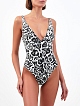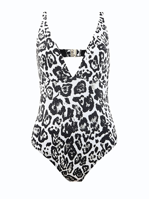 Слитный купальник с анималистичным принтом и прозрачными кристаллами