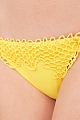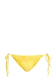 Эффектные женские танга из пляжной коллекции Ermanno Scervino из двух слоев эластичного быстросохнущего материала желтого канареечного цвета, украшенного невесомым ажурным кружевом в стиле макраме в тон. Модель с тонкими двойными завязками на боковых панелях, которые позволяют регулировать ширину изделия индивидуально. Сделано в Италии.