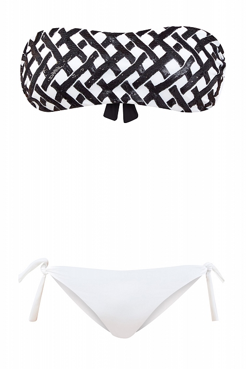 Эффектный лиф-бандо из быстросохнущего материала с контрастной отделкой пайетками