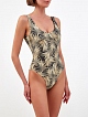 Слитный купальник с тропическим принтом и нашивкой на спинке