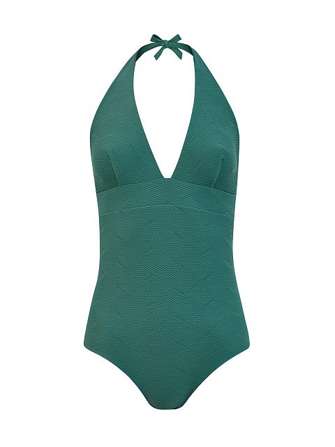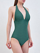Однотонный купальник с V-образным вырезом и фактурным узором