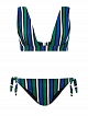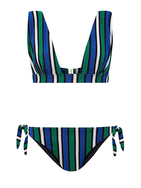 Лиф-бикини от MC2 Saint Barth создан из быстросохнущей ткани — волокна вискозы придают характерную текстуру, а синтетические нити предотвращают выгорание на солнце. Модель с принтом в широкую полоску дополнена люрексом, который создает игру света и тени по поверхности. Треугольные чашечки придают образу акцент в ретро-стиле. Детали: застежка на спинке, эластичная лента по нижнему краю, конструкция без поролоновых чашечек.