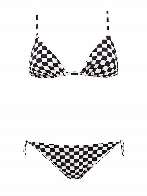 Лиф от MC2 Saint Barth. Для создания модели была выбрана быстросохнущая эластичная ткань, устойчивая к выгоранию на солнце. Контрастный графический принт в монохромной гамме задает ироничное настроение. Детали: конструкция без поролоновых вставок и косточек, металлическая застежка на спинке.