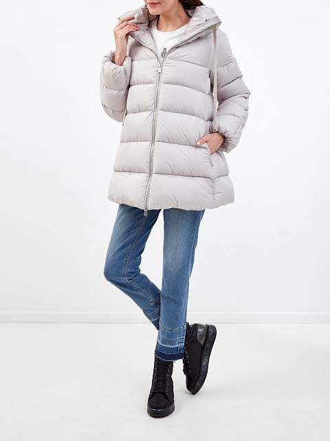 Однотонный пуховик add® LOFT 85 от ADD создан в нейтральном кремово-сером оттенке. Стеганая поверхность материала с мягким утеплителем из утиного пуха и пера надежно защищает от холода, не утяжеляя изделие. Свободный крой не стесняет движений, глубокий капюшон на лентах грогрен придает дополнительный комфорт. Детали: внутренняя регулируемая кулиска, застежка на молнию, прорезные карманы.