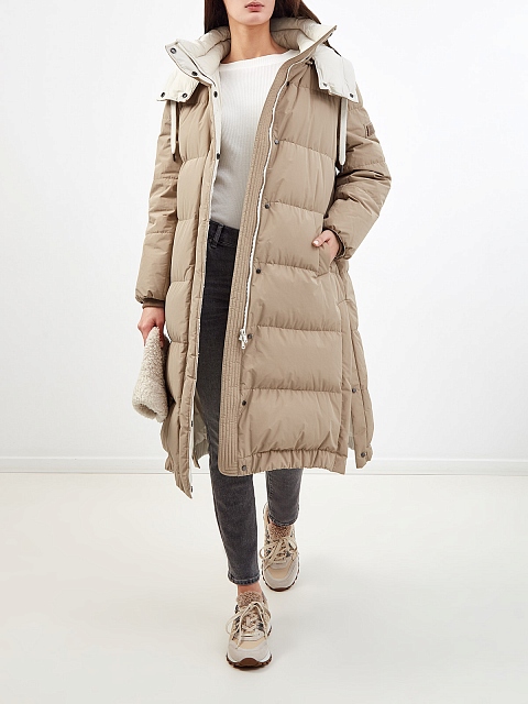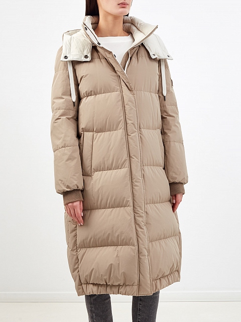 Длинный пуховик из водоотталкивающей тафты с нашивкой Precious