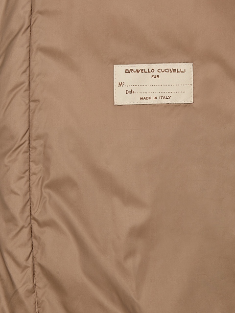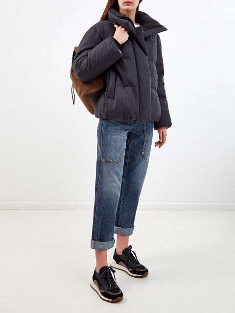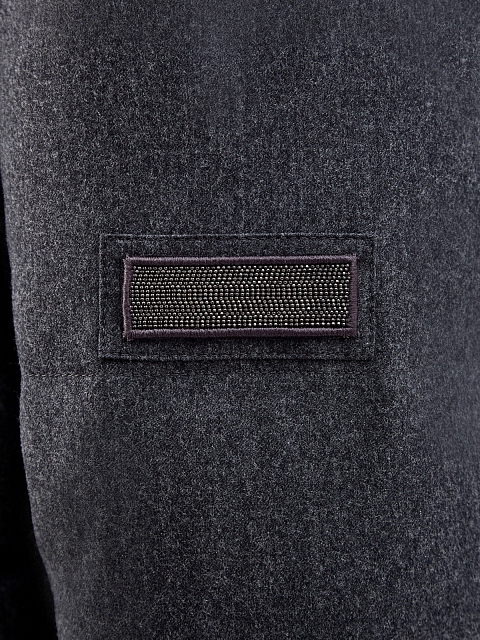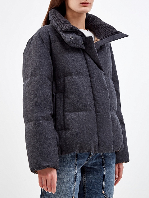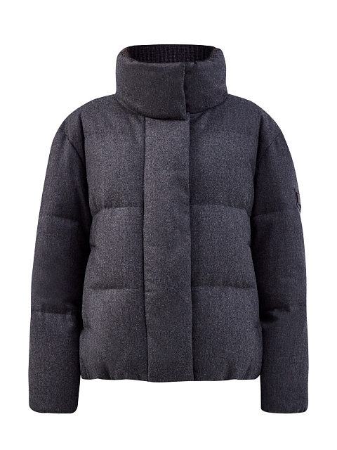 Укороченный пуховик из шерстяной фланели с ювелирной нашивкой