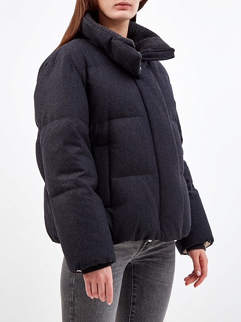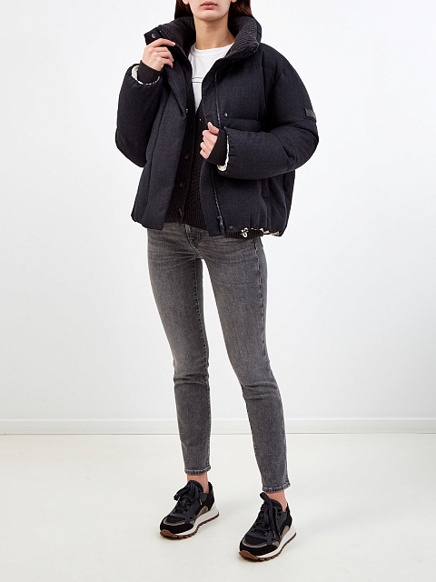 Пуховик из шерстяной фланели с элегантной нашивкой Мониль