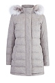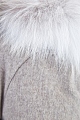 Базовое женское пальто от Enrico Mandelli выполнено из мягкого кашемира от Loro Piana сложного бежево-серого тона и дополнено внутренней стеганой подкладкой из непромокаемого нейлона с утепляющей прослойкой из пуха. Съемный капюшон декорирован отделкой из меха финской лисы Fawn Light натурального окраса. Детали: кулиска по талии, прорезные карманы, двойная застежка, эластичные манжеты. Сделано в Италии.