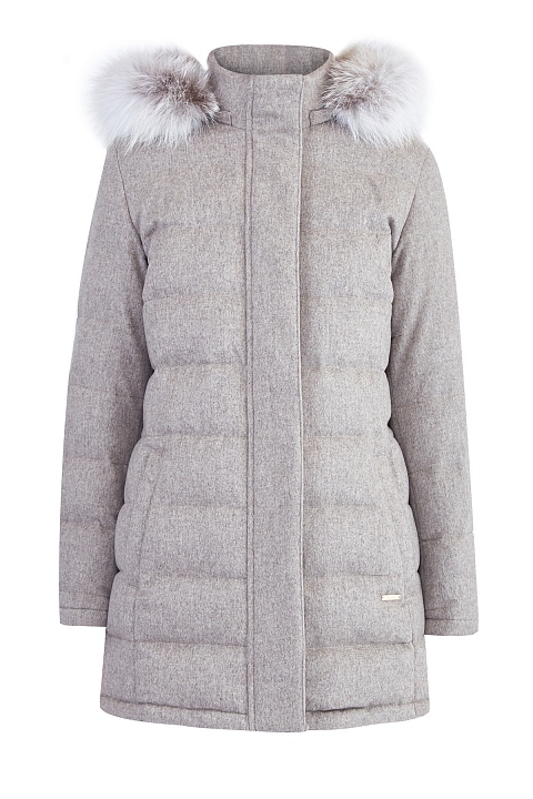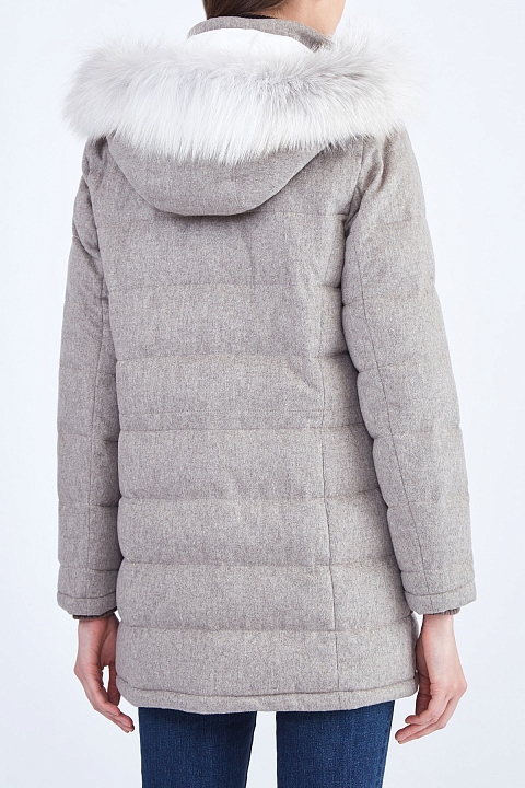 Пуховое пальто из кашемира от Loro Piana с отделкой из меха лисы
