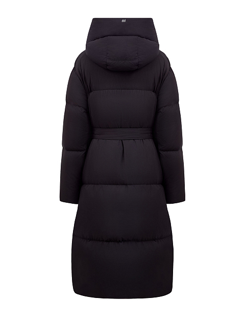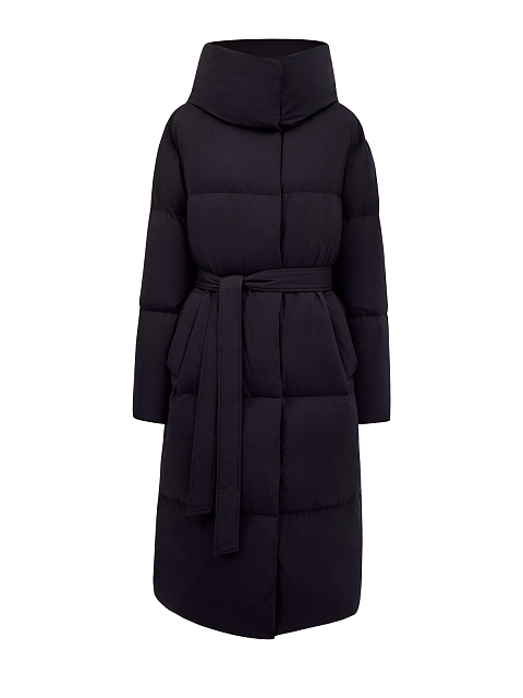 Удлиненный пуховик из влагозащитного нейлона с поясом в тон