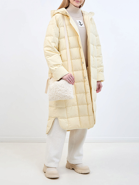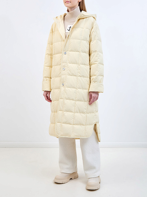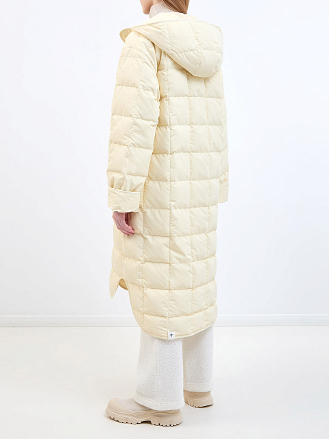 Удлиненный пуховик из стеганого матового нейлона с капюшоном