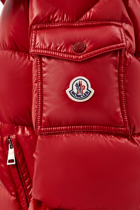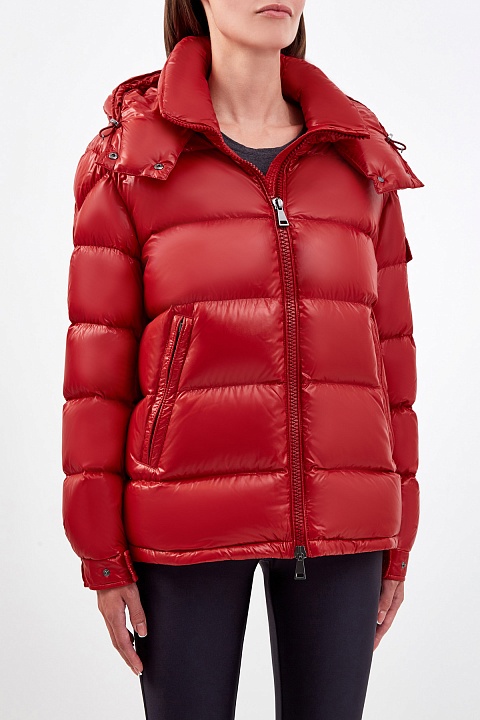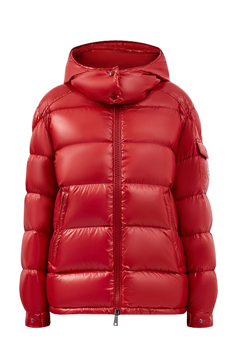 Яркий пуховик Maire от Moncler выполнен в густом красном оттенке из глянцевого нейлона laqué. Водонепроницаемая ткань и пуховый утеплитель делает модель особенно актуальной для зимнего сезона. Практичный дизайн со съемным капюшоном и эластичными манжетами на кнопках позволяет отрегулировать посадку изделия индивидуально. Детали: застежка-молния с двойным пуллером, два кармана по бокам и один накладной карман с клапаном на рукаве.