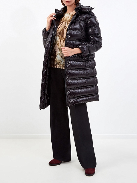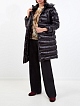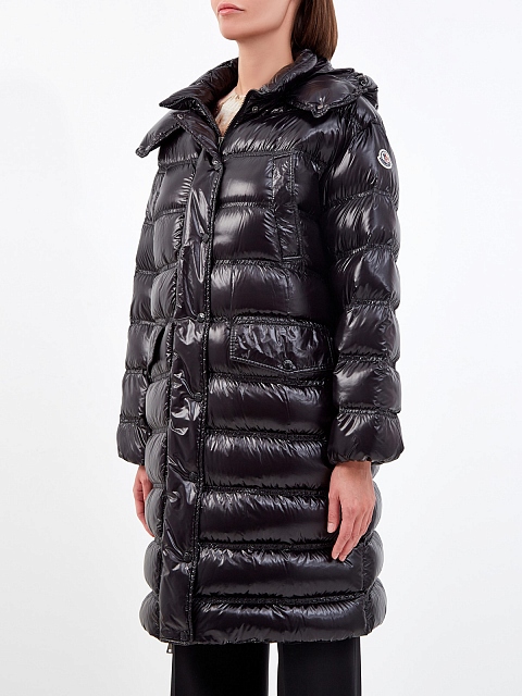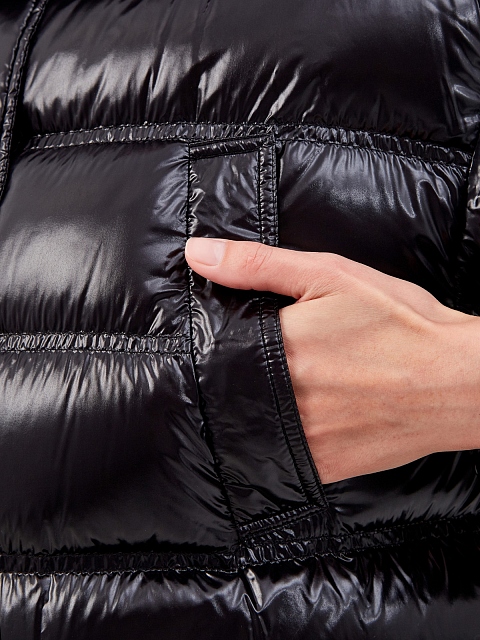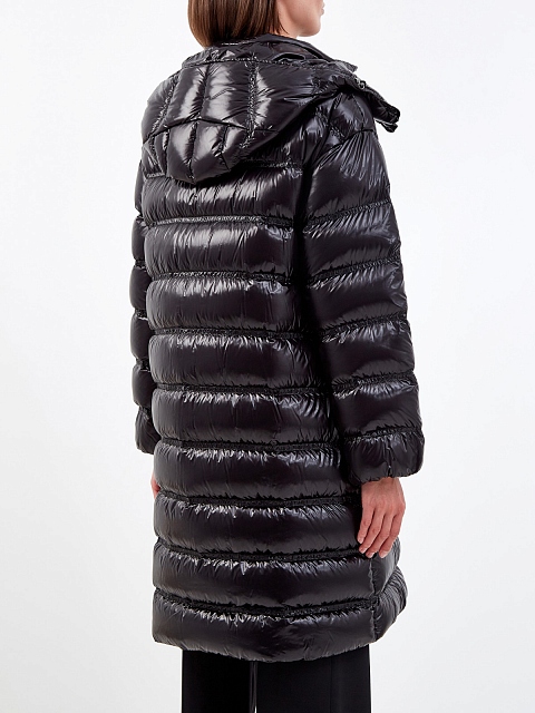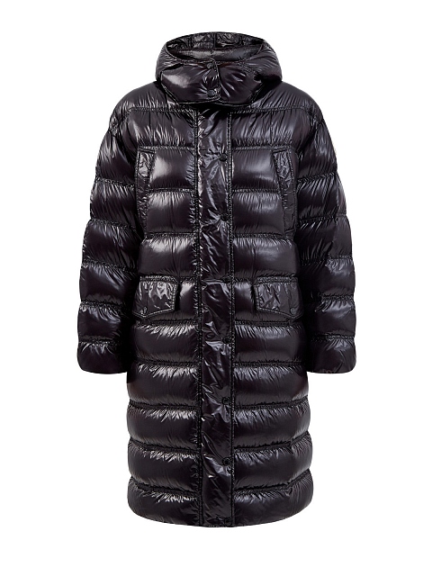 Удлиненный пуховик из глянцевого нейлона с капюшоном