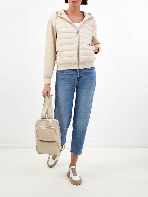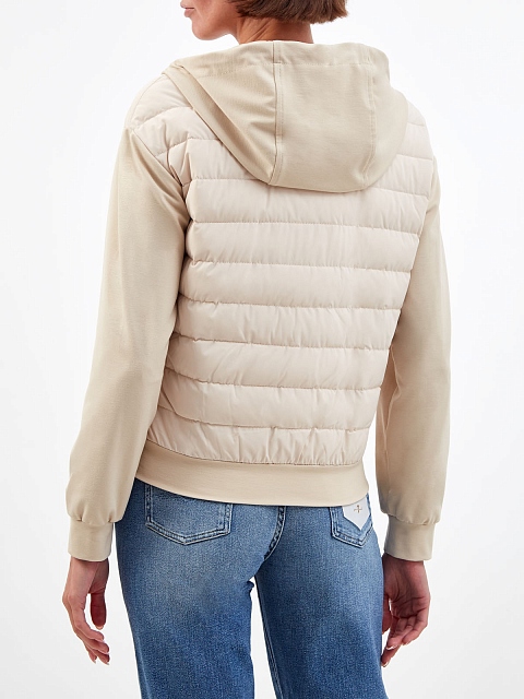 Комбинированный пуховик в стиле бомбера с капюшоном