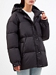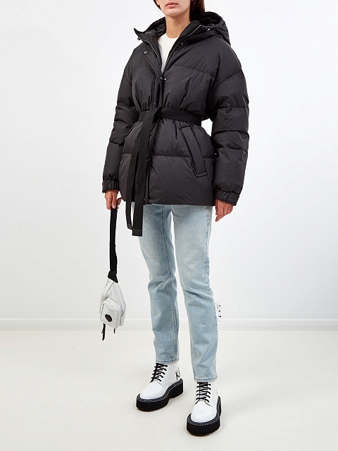 Стеганый пуховик с капюшоном и съемным поясом в тон