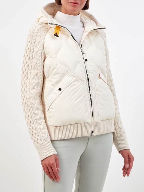 Комбинированная пуховая куртка с рукавами аранской вязки
