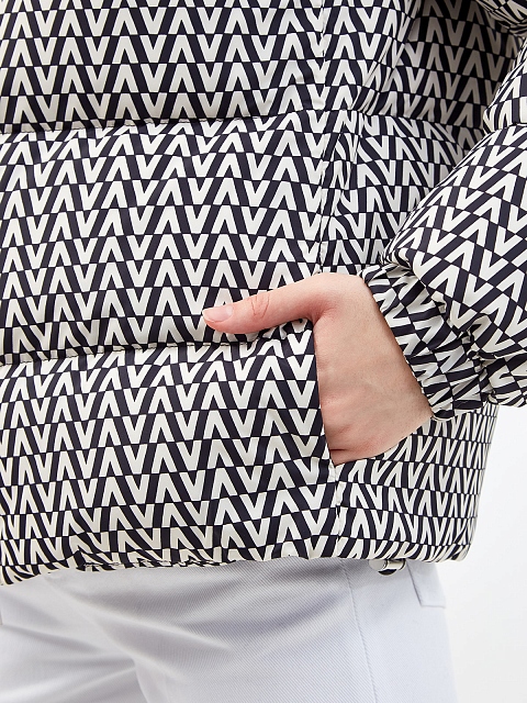 Стильный женский пуховик от Valentino сочетает объемный силуэт и эффектную отделку. Модель из водоотталкивающего стеганого нейлона утеплена наполнителем из мягкого пуха и пера, что делает ее идеальной для погодных условий межсезонья. Архивный принт Optical Valentino создает графический эффект по всей поверхности и подчеркивает фирменный стиль Модного Дома. Детали: глубокий капюшон, прорезные карманы, застежка на молнию с двойным пуллером. Сделано в Италии.