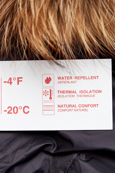 Материал: полиамид 100%, пух 90%, перо 10%, мех енота 100%