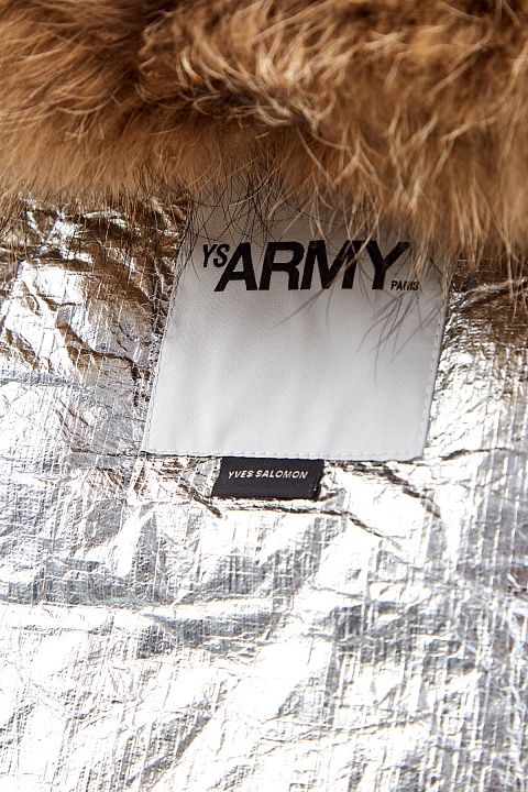 Двусторонняя парка от Yves Salomon из матового нейлона. Водонепроницаемая и дышащая ткань неуязвима для ветра и снега. Прослойка из воздушного пуха делает модель идеальной для низких температур до −20℃. Внутренняя поверхность в урбанистическом стиле с металлизированным напылением и эффектом кракле. Глубокий капюшон со съемной отделкой из меха финского енота дополнительно защищает от ветра. Детали: прорезные карманы, кулиска по нижнему краю, эластичные манжеты. Сделано во Франции.