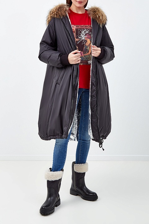 Стиль: Удлиненные, С капюшоном, Мех