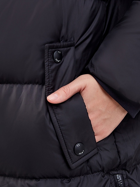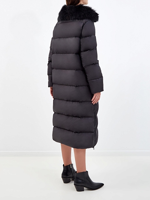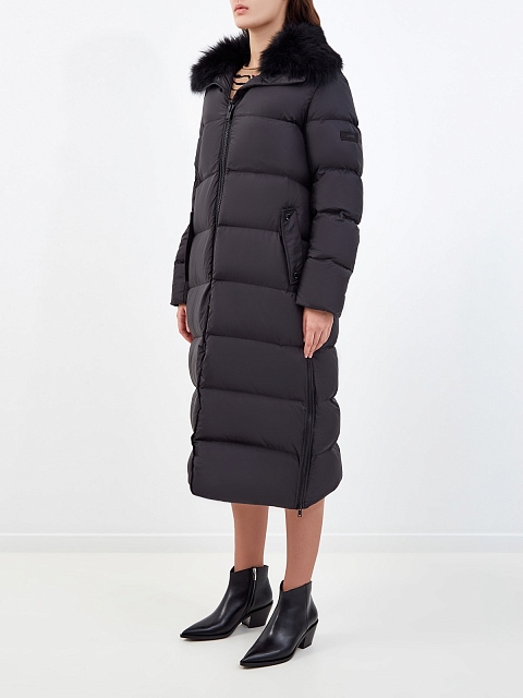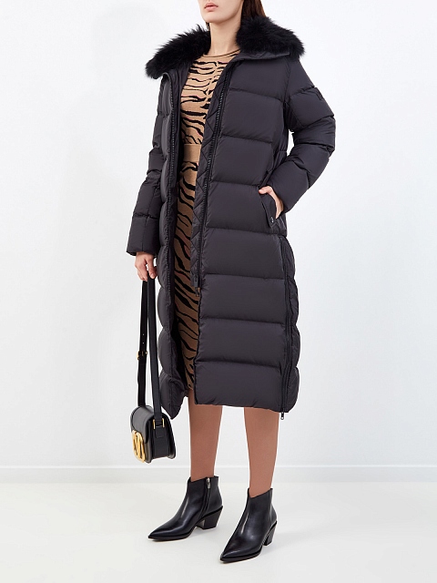 Функциональный женский пуховик Army от Yves Salomon создан из непромокаемой и ветрозащитной ткани в черном цвете. Утепляющая прослойка из пуха и пера делает модель идеальной для составления зимних образов. Объемный удлиненный крой не стесняет движений и сохраняет тепло. Высокий ворот окантован мехом ягненка, разрезы по нижнему краю позволяют индивидуально сформировать силуэт. Детали: застежка на молнию с двойным пуллером на передней планке, прорезные карманы с клапанами, брендированная фурнитура, фирменная нашивка с символикой. Сделано во Франции.
