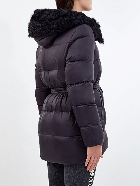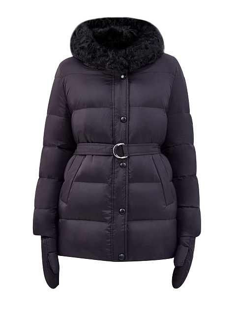 Лаконичный женский пуховик в универсальном черном цвете от Yves Salomon создан из плотного нейлона. Утепленная модель с двумя прорезными карманами и глубоким капюшоном дополнена съемной окантовкой из меха ягненка в тон изделия. Съемный пояс с D-образными фиксаторами визуально структурирует силуэт, придавая ему элегантные очертания. Детали: эластичные манжеты, двойная линия застежки, варежки в комплекте, внутренняя регулируемая кулиска. Сделано во Франции.
