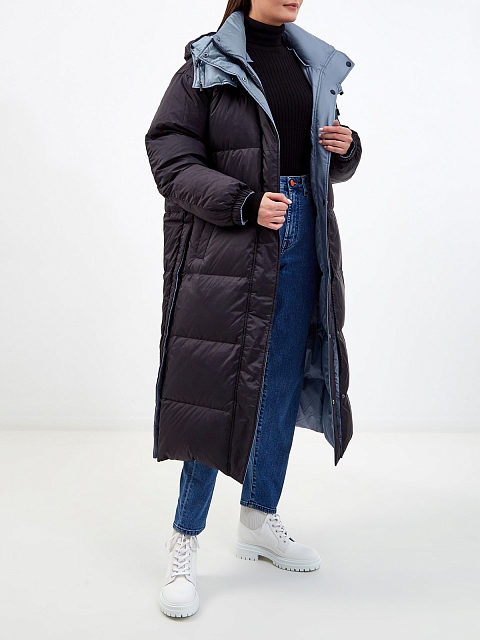 Функциональный женский пуховик Army от Yves Salomon создан из матового водоотталкивающего нейлона. Плотный материал с мягким утеплителем из гусиного пуха и пера надежно защищает от холода, не утяжеляя изделие. Модель сочетает два универсальных оттенка — синий и черный, макро-принт Army подчеркивает динамичный стиль изделия. Детали: разрезы на кнопках по бокам, двойная линия застежки, съемный капюшон, прорезные карманы.