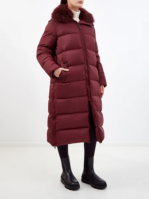 Удлиненный пуховик Army от Yves Salomon создан из непромокаемого и ветрозащитного нейлона в оттенке бордо. Утепляющая прослойка из пуха и пера делает модель идеальной для составления зимних образов до −20℃. Съемная отделка из овчины и разрезы на молниях по бокам завершают функциональный дизайн. Детали: двойная линия застежки, фирменный карабин. Сделано во Франции.