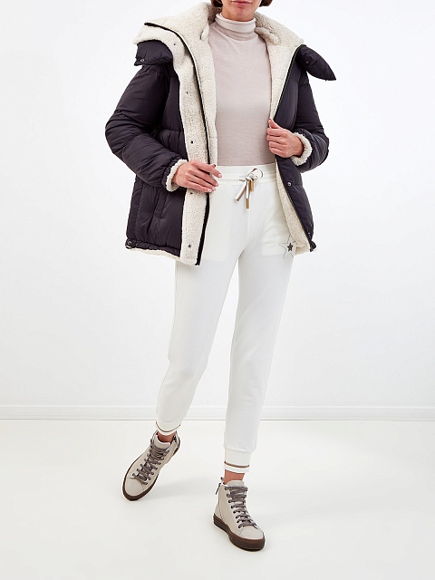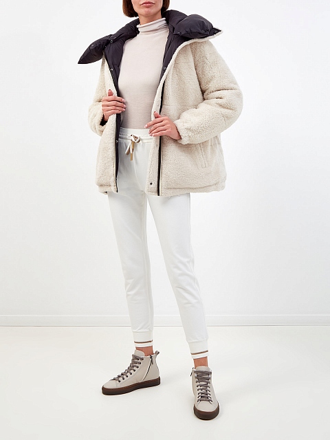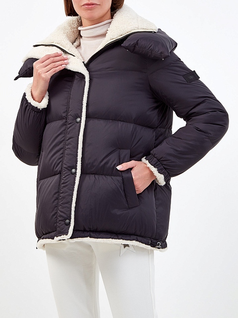 Двусторонний пуховик из водонепроницаемого нейлона и овчины