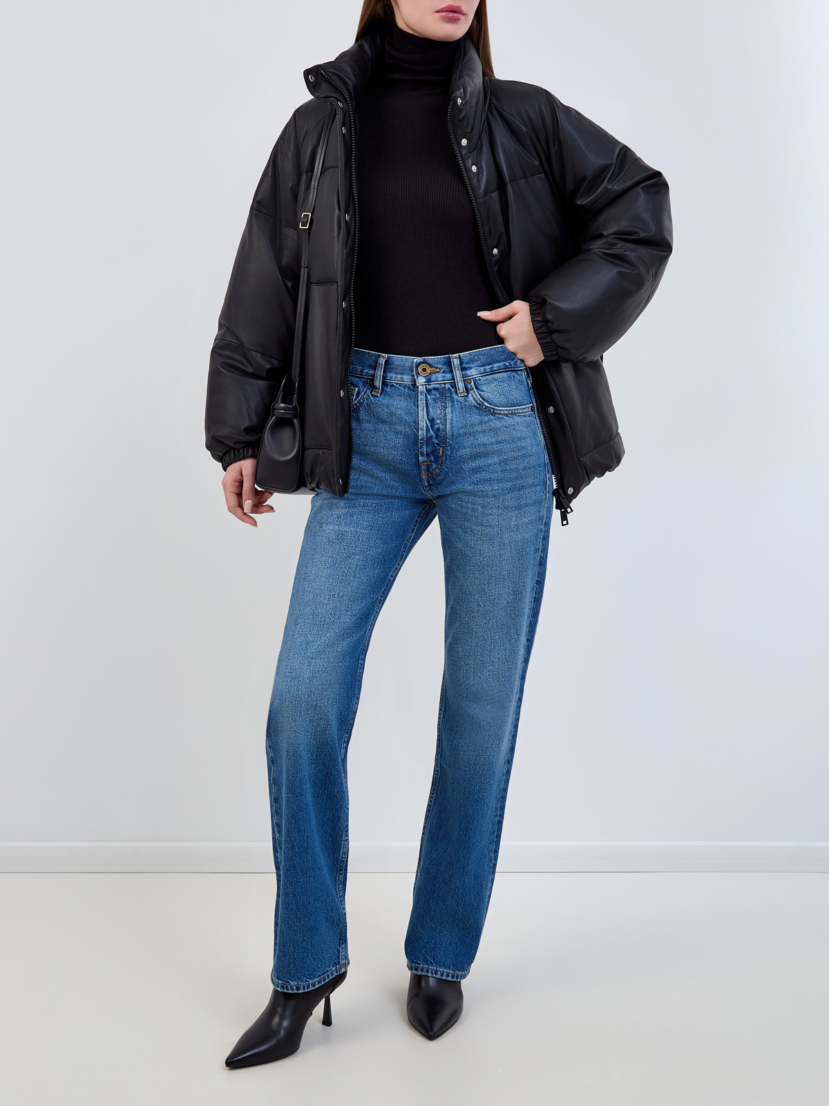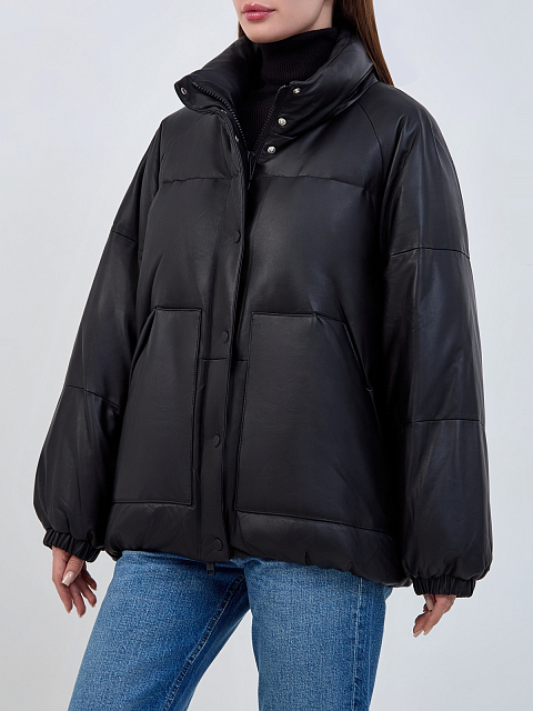 Пуховая куртка из стеганой мелкозернистой кожи наппа