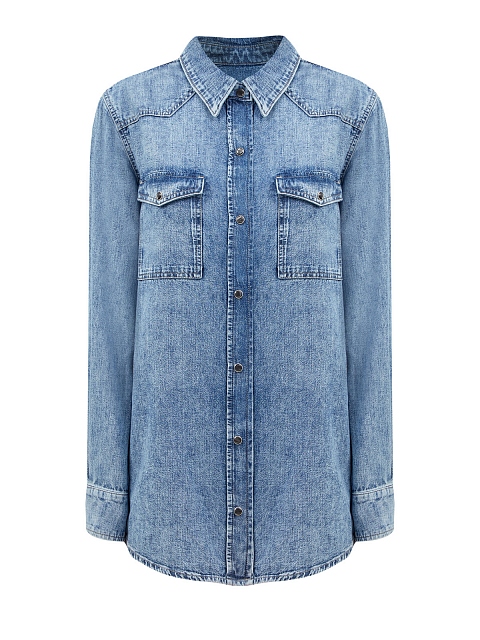 Джинсовая рубашка Emilia с накладными карманами и прострочкой