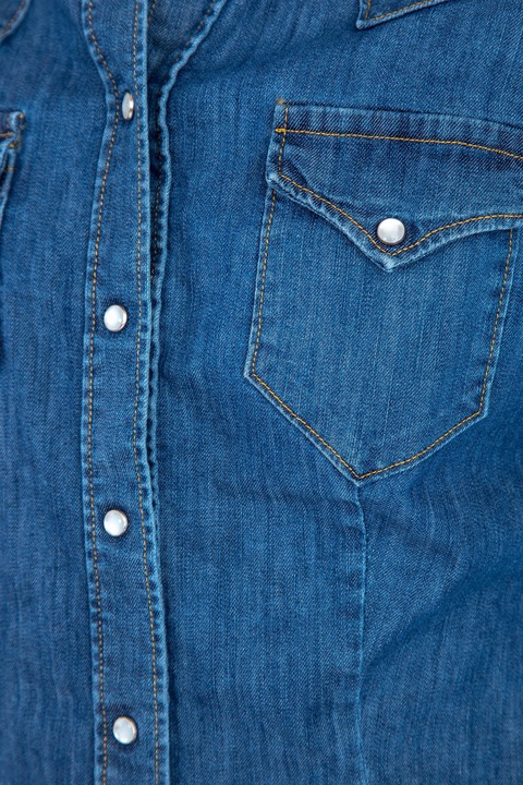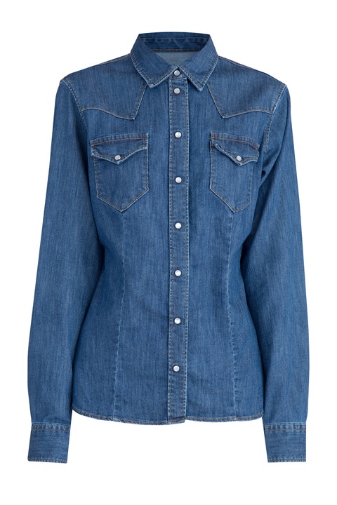 Рубашка приталенного кроя из денима с рядом клепок-пуговиц