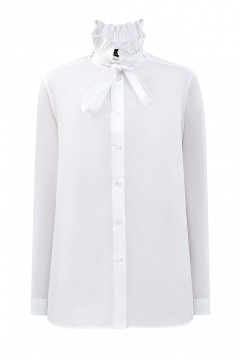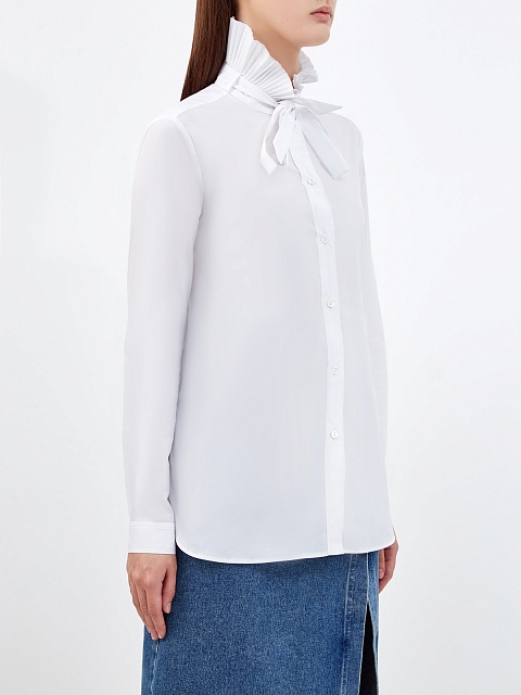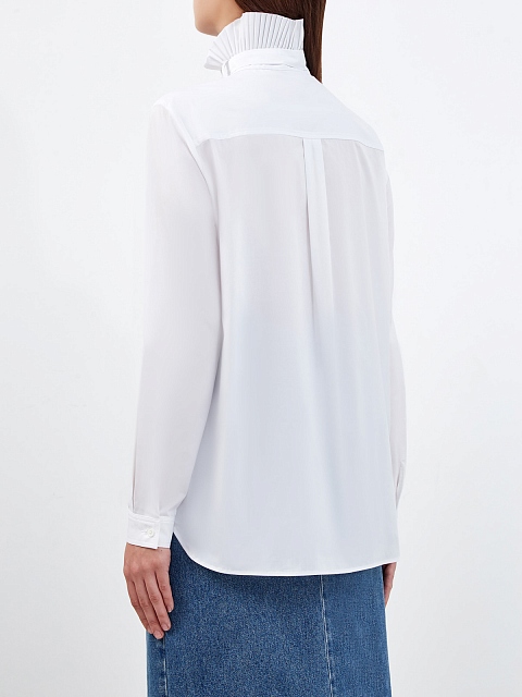 Блуза из хлопкового поплина с плиссированным воротом-жабо