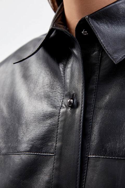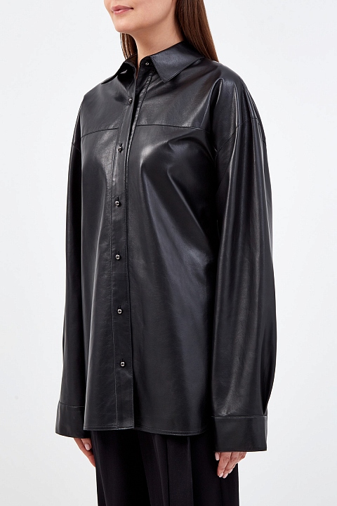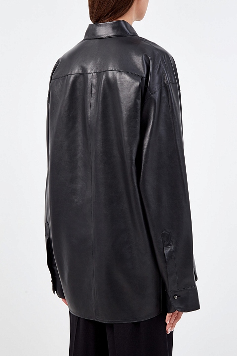 Удлиненная рубашка-oversize ручной работы из глянцевой кожи ягненка
