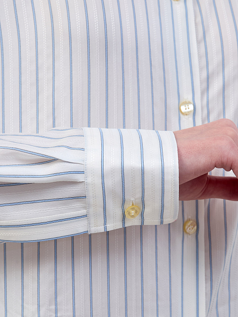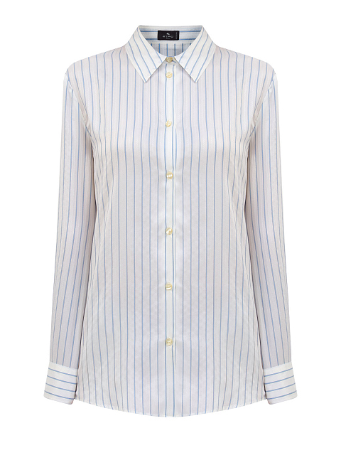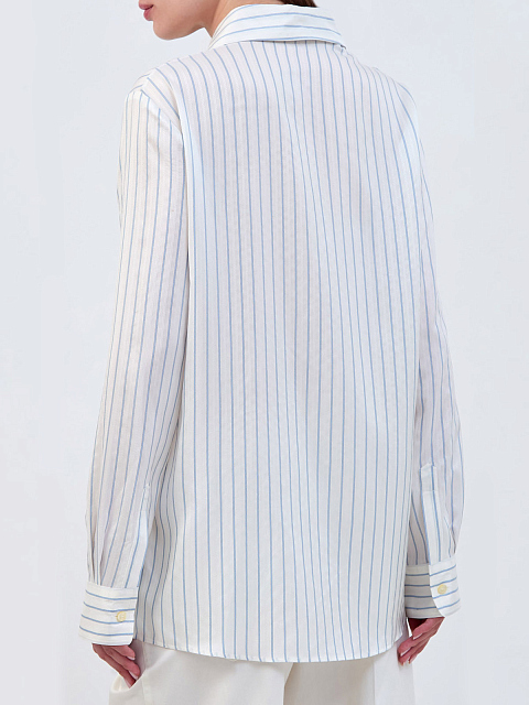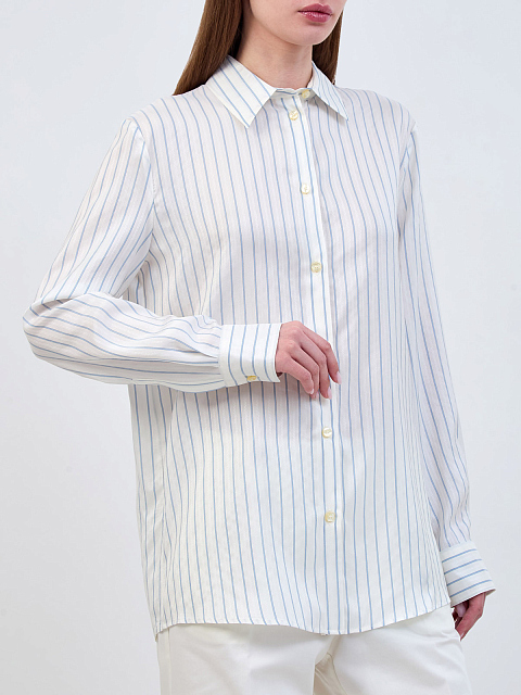 Шелковая рубашка с узором в тонкую полоску и прострочкой ламе