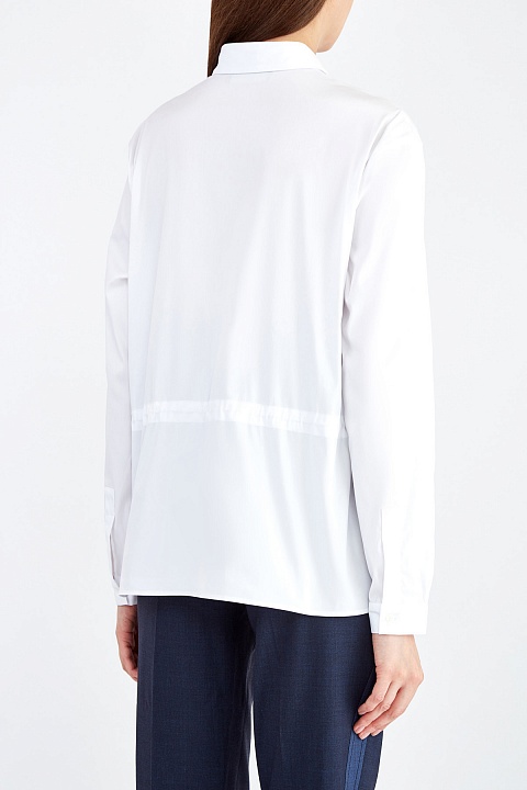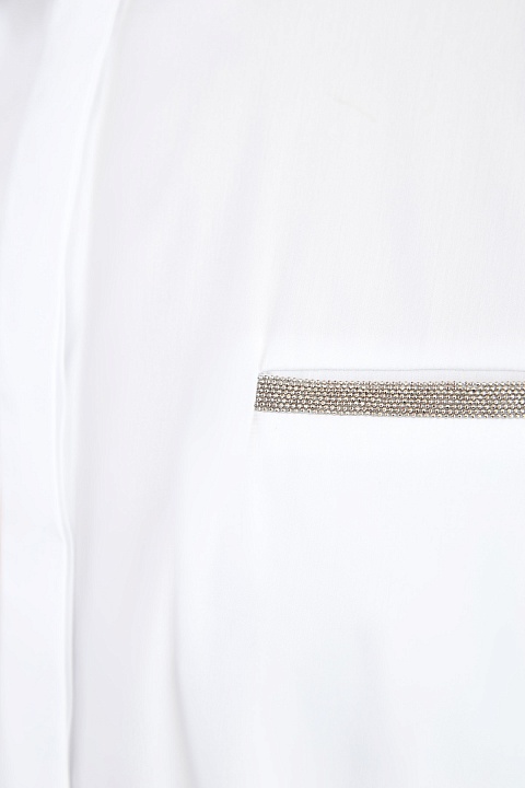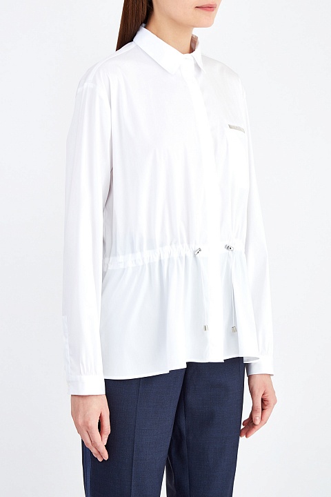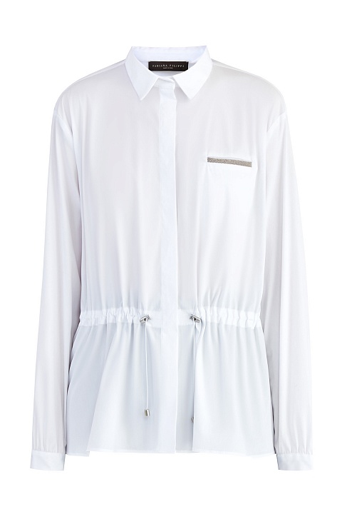 Белая рубашка из поплина с кулиской на талии и сверкающей вышивкой