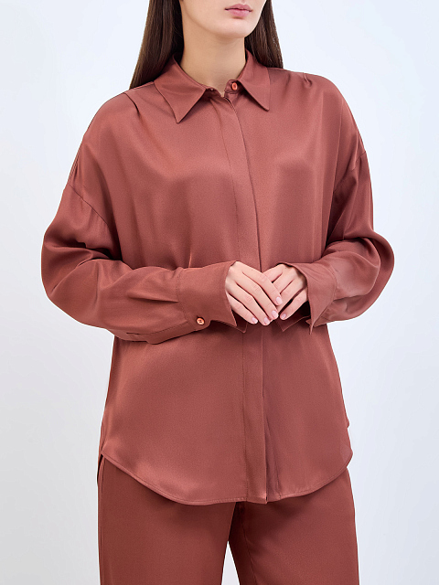 Свободная блуза из гладкого шелкового твила с символикой