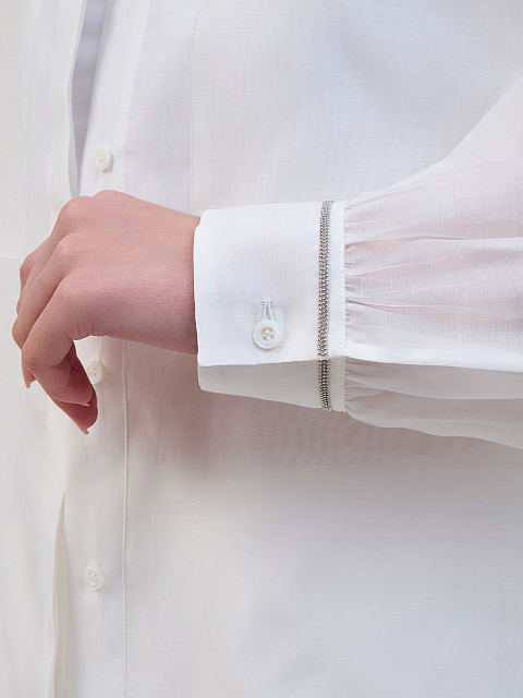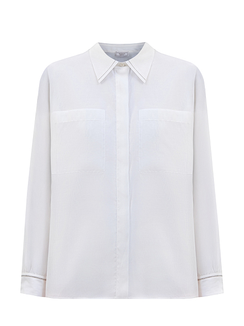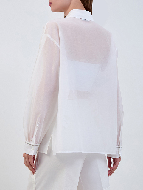 Рубашка из полупрозрачного хлопка и шелка с ювелирной окантовкой