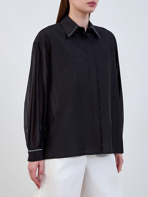Рубашка из хлопковой и шелковой органзы с деталями Punto Luce