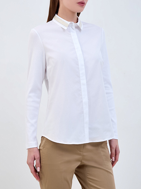 Рубашка из эластичного поплина с жаккардовой деталью Punto Luce