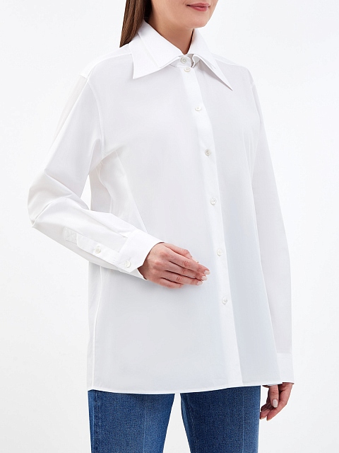 Белая рубашка из хлопкового поплина с двойным воротником