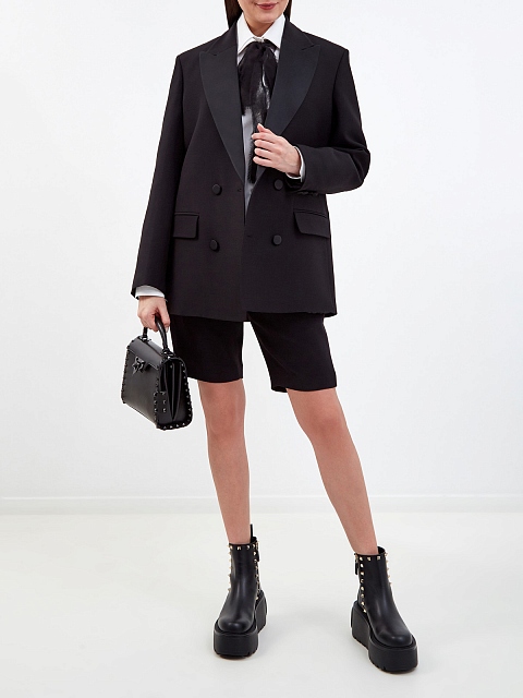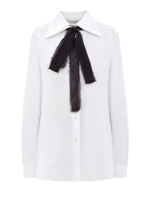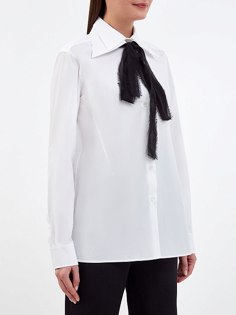 Рубашка с контрастной лентой-бантом и двойным воротником