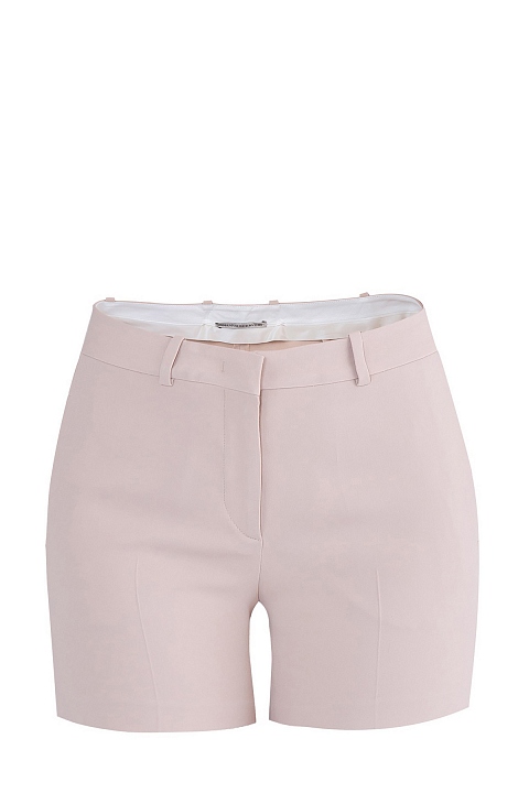 Лаконичные мини-шорты облегающего силуэта из коллекции Ermanno Scervino. Модель выполнена из модернизированной мягкой вискозы благородного кремового тона. Изделие с традиционной посадкой на талии и тонким конструктивным ремешком со шлевками. По бокам прорезные карманы, спереди — стрелки. Застежка осуществляется на молнию и потайной крючок. Произведено в Италии.