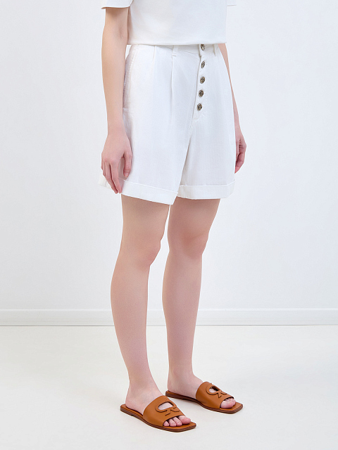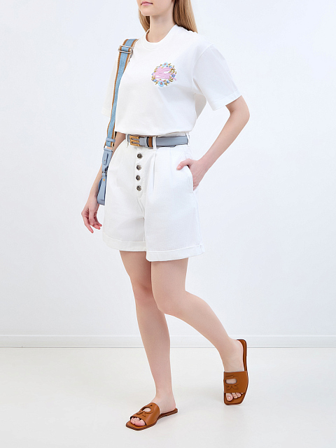 Шорты из хлопкового габардина с застежкой на брендированные пуговицы